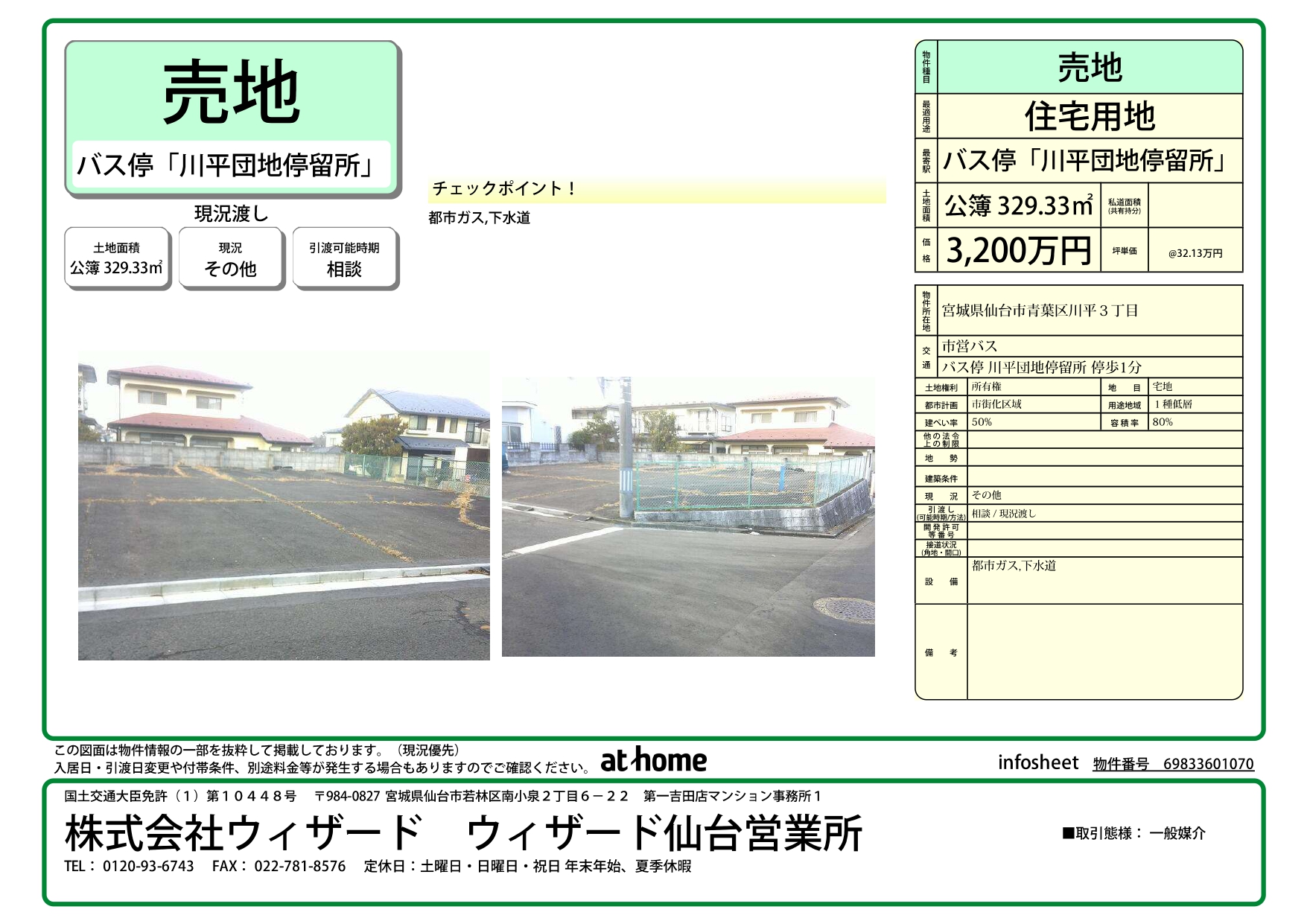 物件所在地:宮城県仙台市青葉区川平3丁目