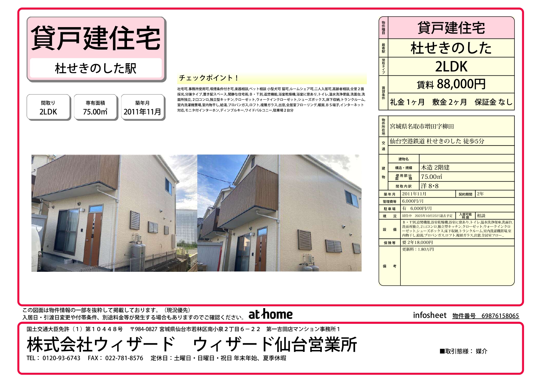 貸戸建住宅 杜せきのした 2LDK 賃料88,000円 | 株式会社ウィザード